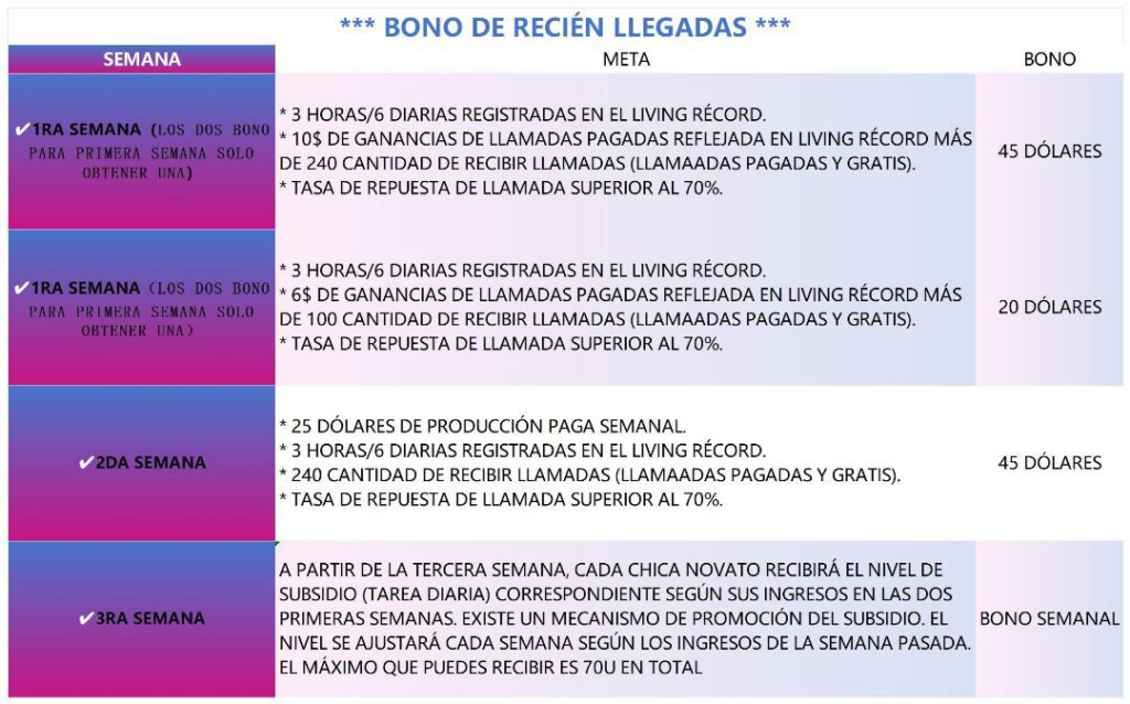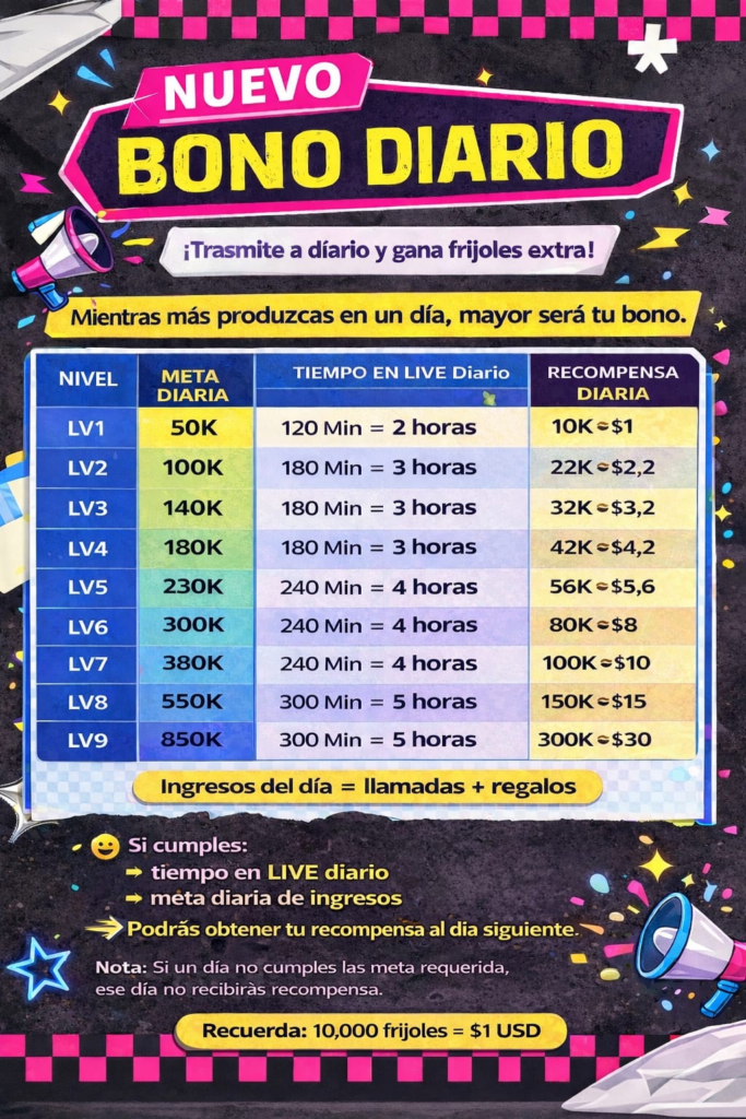 Hay 2 bonificaciones: bono diario y bono para nuevas streamers: