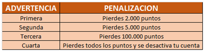 Si en algún momento la app te llega a penalizar y quitar puntos de manera injustificada, puedes escribirme para solicitar que te devuelvan los puntos